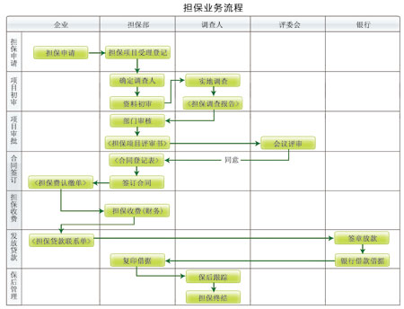 ◎ 業(yè)務(wù)流程簡單靈活,滿足多種擔(dān)保業(yè)務(wù)需求、具備提前還款、擔(dān)保展期、擔(dān)保撤保 等處理功能,具有很好的適應(yīng)性。